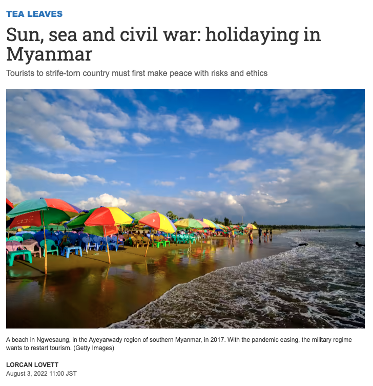 Nikkei Asian Review, 3 August 2022 In the grand lobby of a Yangon hotel, a senior Myanmar tourism official told me she was meeting government officials to “rebrand” the country to focus international attention on pristine beaches instead of conflict and military atrocities. It was March 2018, and Myanmar was governed by an elected civilian […]